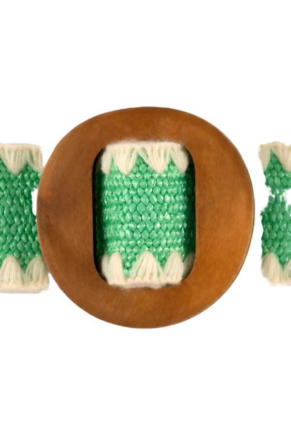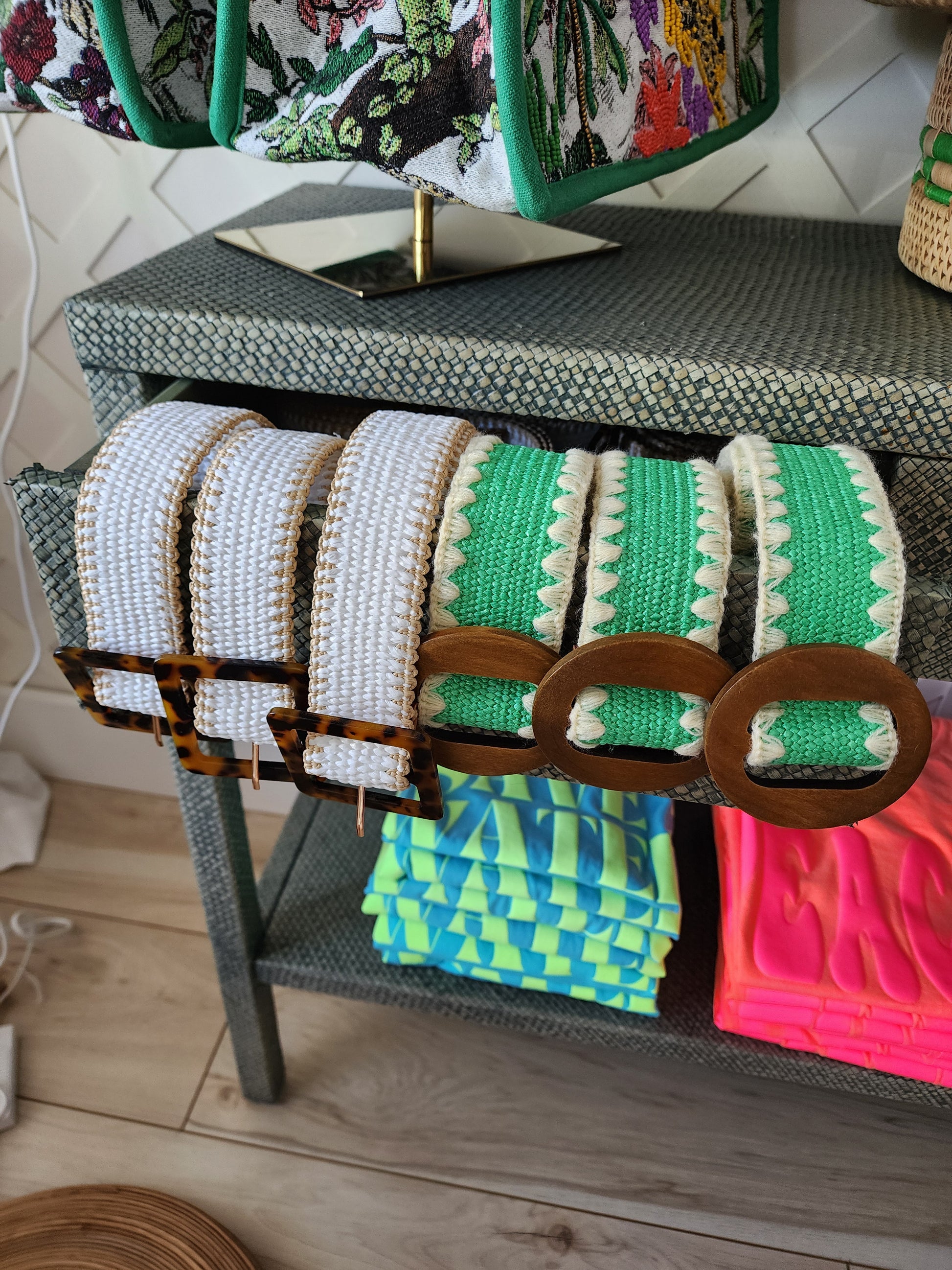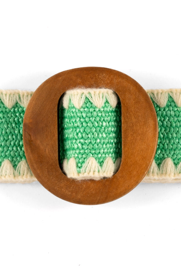 Wood buckle mint green woven belt. The perfect addition to any dress or tunic top yearning for a little Palm Beach green!