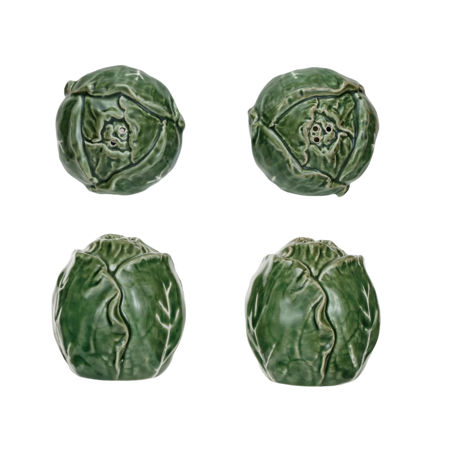 Cabbage Embossed Stoneware - Salt + Pepper Shakers