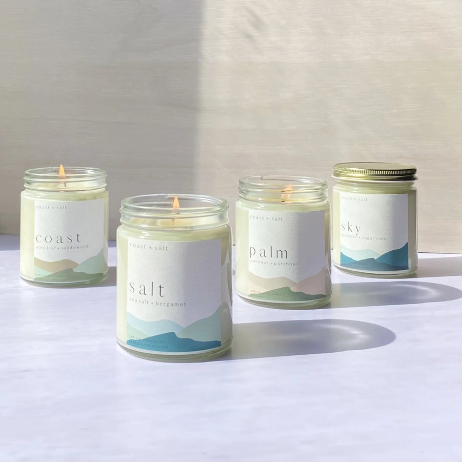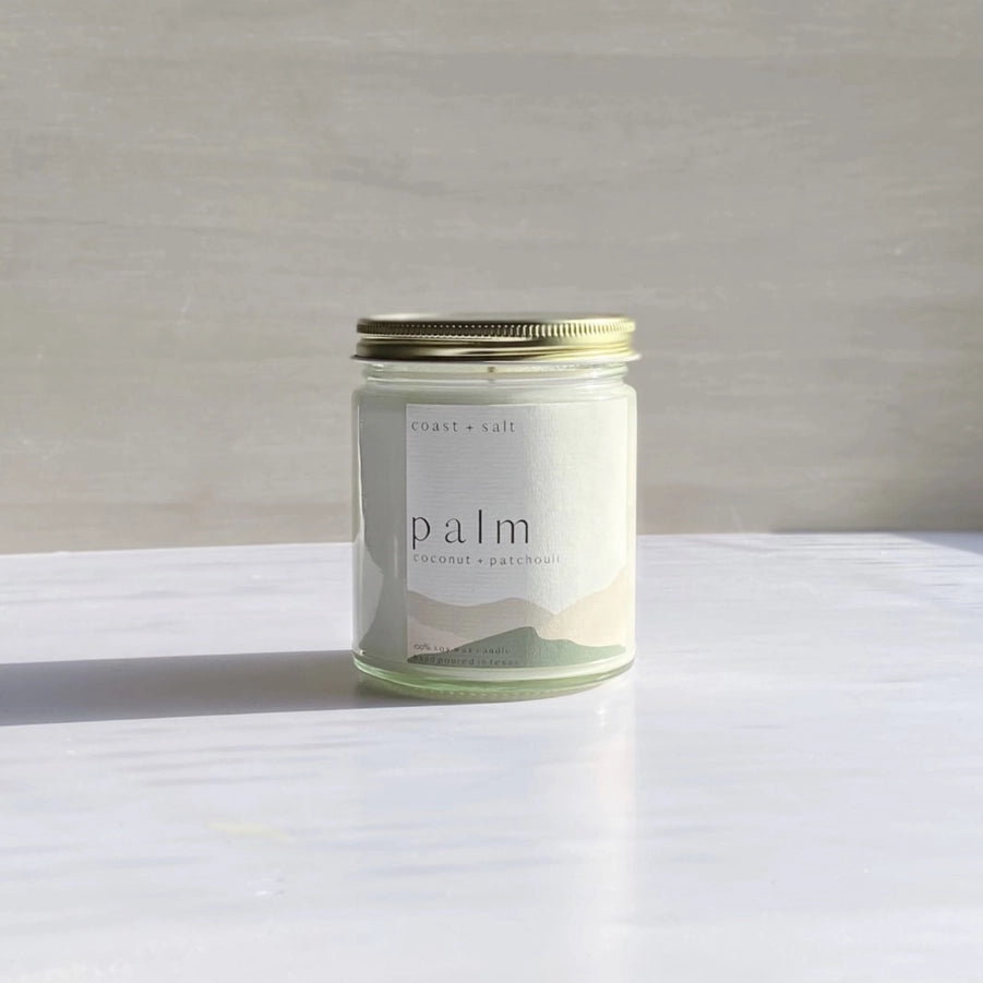 Palm ~ A cool salty breeze carries notes of coconut husk + jasmine, on top of earthy patchouli with a woody amber base
