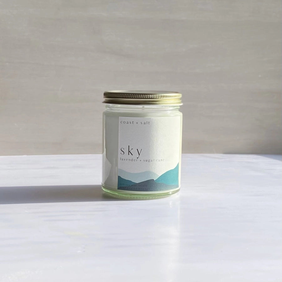 Sky ~ Notes of lavender + sugar cane floating on sweet cream, with a warm base of amber + vanilla round out this craveable scent.