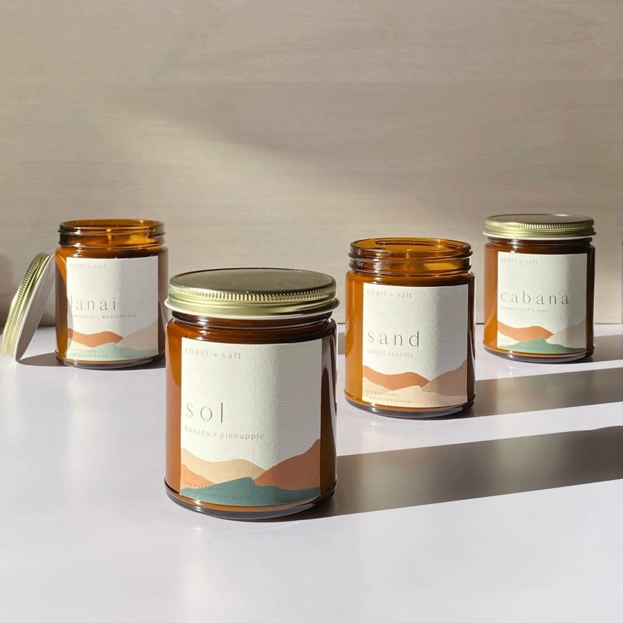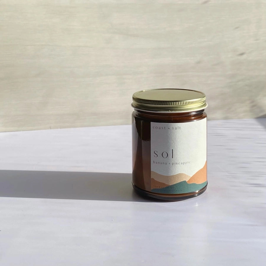 Sol ~notes of caramelized banana + grilled pineapple, with heart notes of toasted coconut +warm ginger that evokes a balmy spa-like experience. Tropical spice + Tahitian vanilla round out this exotic scent.