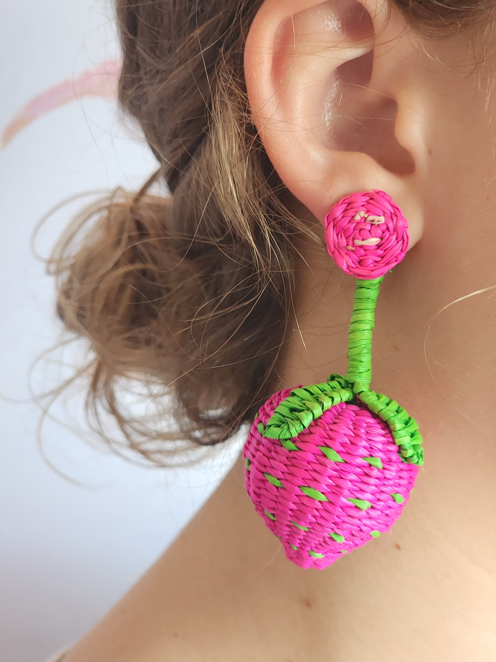 Strawberry season is all year long with these woven statement earrings. Pack a lil' pink bunch toward any outfit!