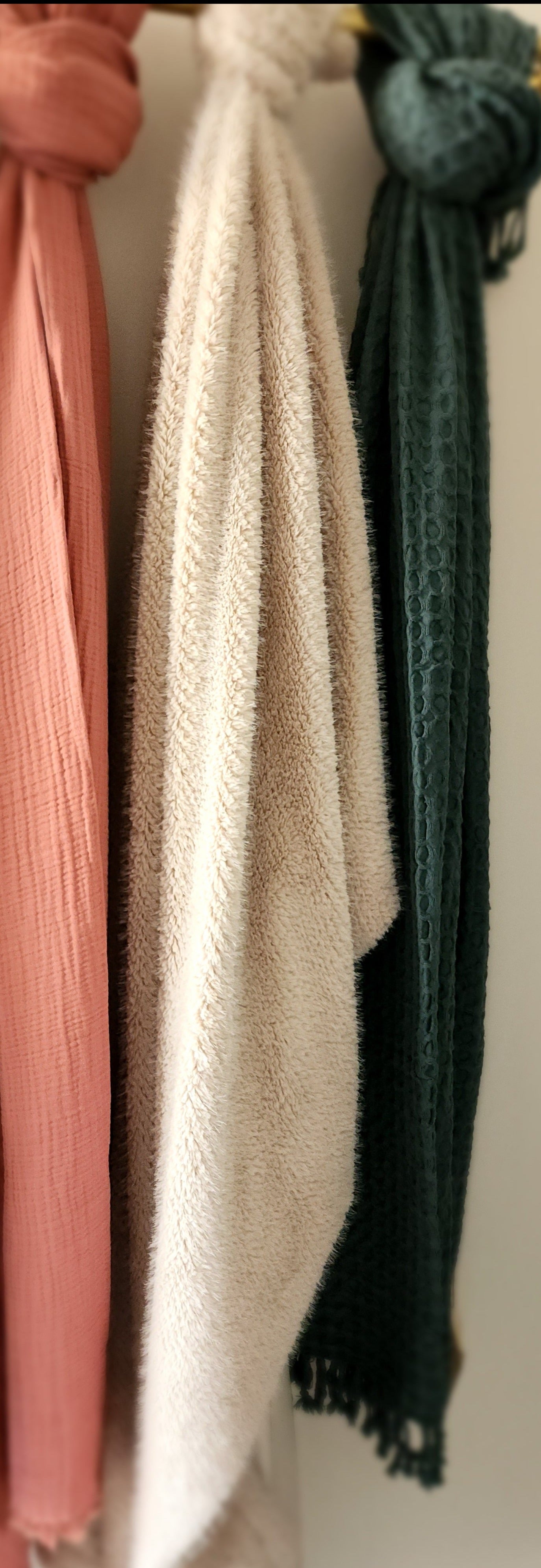 Fuzzy faux fur throw blanket in a warm soft gray color, its perfect for adding texture and warmth to any space!
