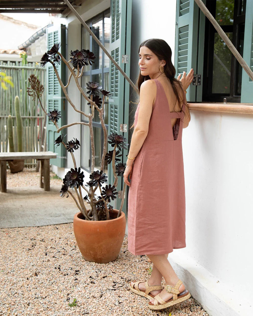 Linen Dress - Cut Out Tahiti - Clay Pink