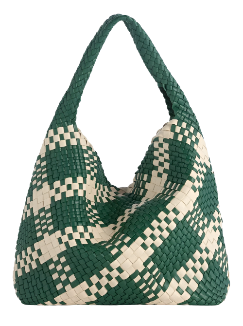 Large plaid hobo bag in green and ivory