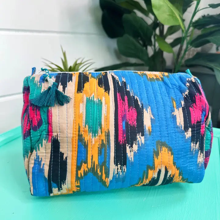 This blue Ikat makeup bag is everything we miss about the '90s!