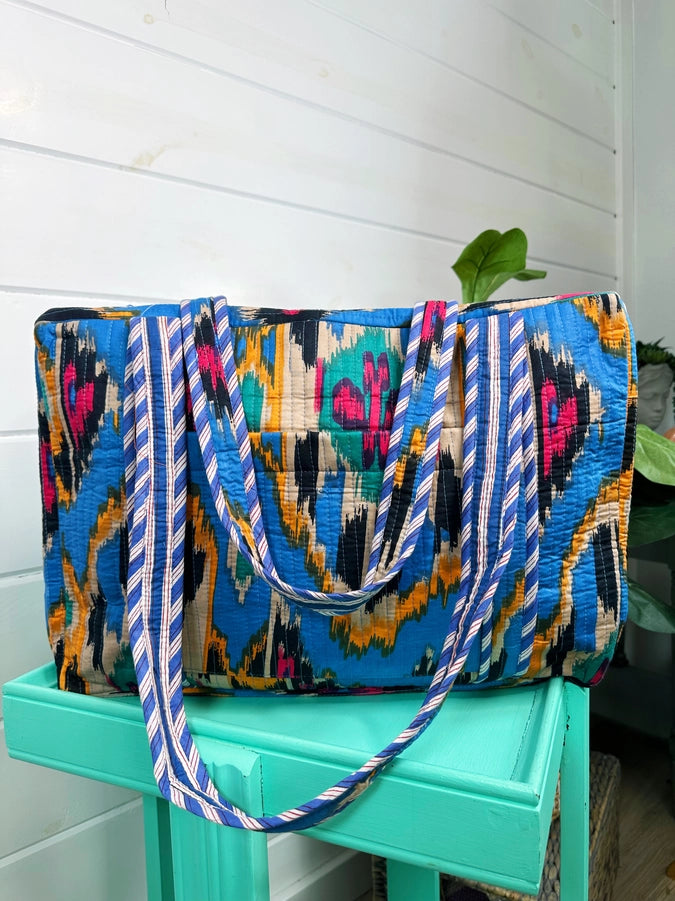 This blue Ikat weekender bag is everything we miss about the '90s!