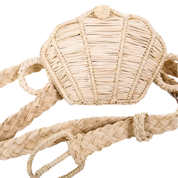 The shell belt bag is the beach girl's answer to the fanny pack! This belt is intricately handwoven into the shape of a seashell from sustainable Iraca palm.