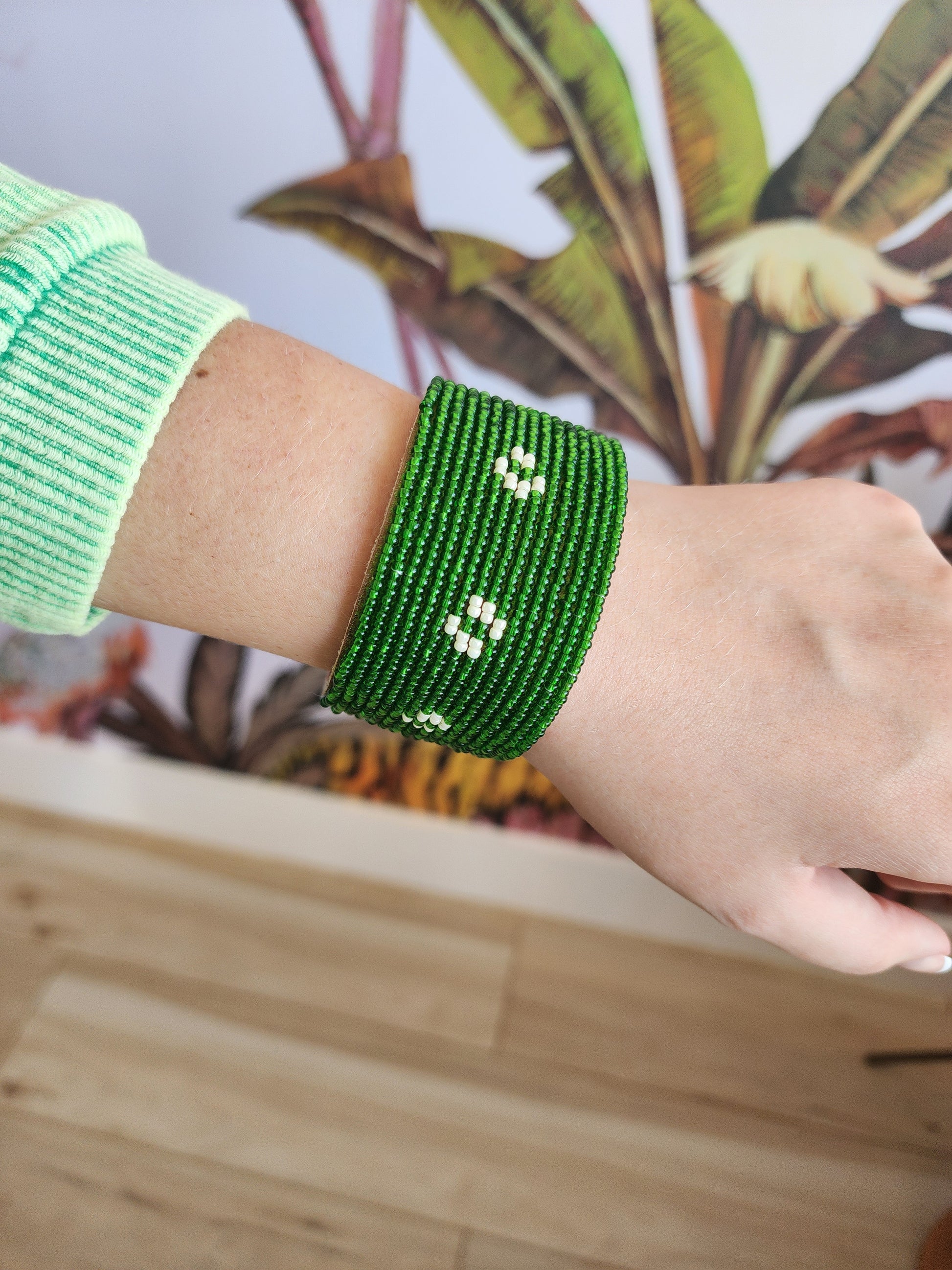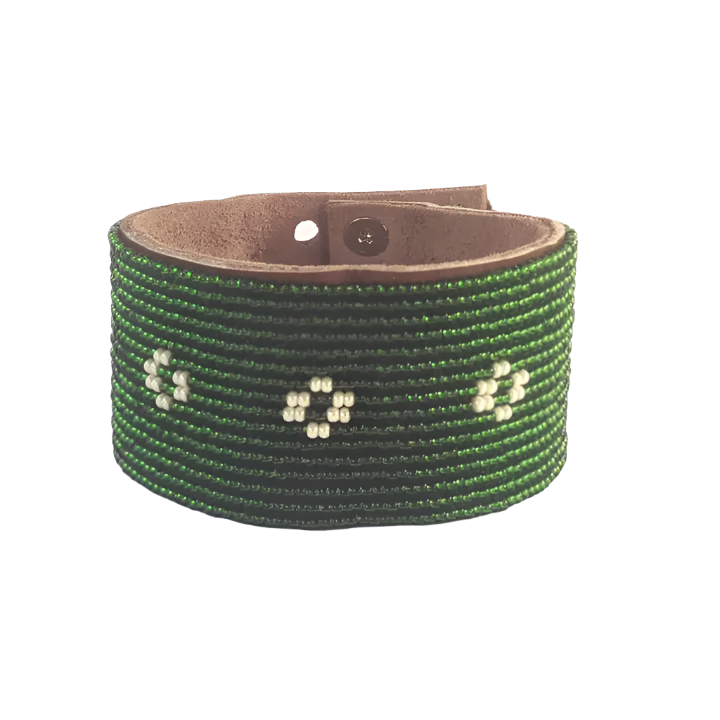 Swahili Bracelet - Large Diamond Dark Green + Pearl